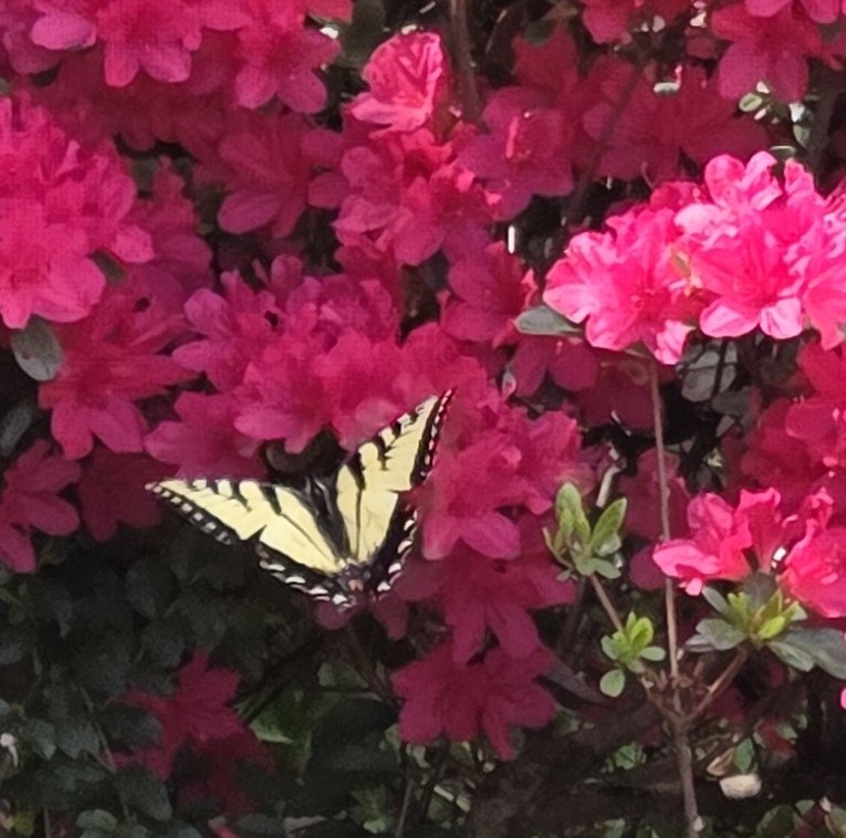 Butterflies are back!!! This one is feasting on an azalea bush.